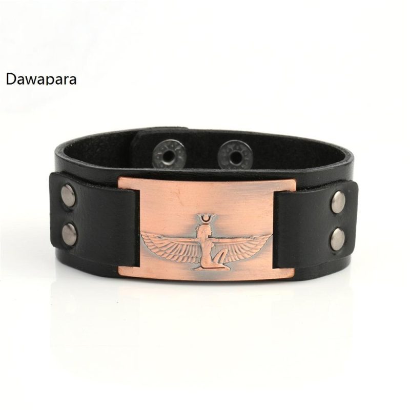Product Name:Dawapara Antique Bronze Wristband Egypt Cleopatra Amulet Charms Cuff Bracelets Bangles Vintage Punk Black Brown Strap Jewelry