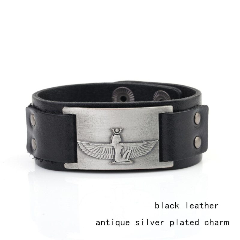 Product Name:Dawapara Egypt Cleopatra Amulet Cuff Bracelets Vintage Bangle Jewelry Antique Silver Tone For Men and Women with Snap Claspe